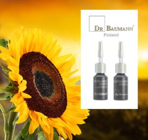 Dr. Baumann sarjan uusimmat tulokkaat ovatkin Glukosamin- ja Niasin Vitamin B3 ampullit ja ne sopivat täydentäviksi ihonhoitotuotteiksi juuri aurinkoaikaan. Levitä pieni määrä ampullia puhdistetulle iholle, anna imeytyä hetki ja levitä päälle Liposome Multi Active E+C tehotippa. Lisäksi voit levittää vielä ihotyyppisi mukaisen hoitovoiteen.